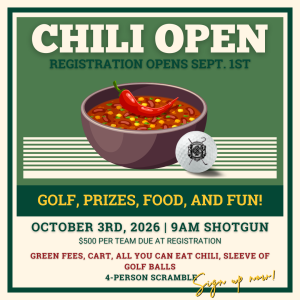 Registration opens September 1, 2026. Tournament will be held on October 3rd, 2026.