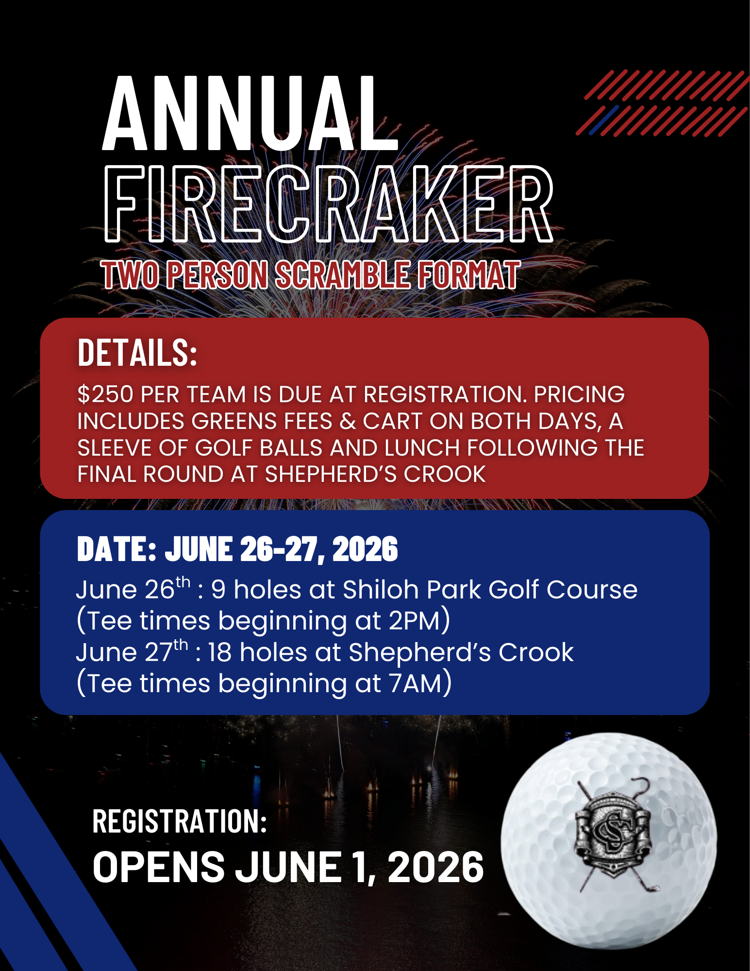 Add this information to the outing page: $250 per team is due at registration. Pricing includes greens fees & cart on both days, a sleeve of golf balls, and lunch following the final round at Shepherd's Crook. June 26th: 9 holes at Shiloh Golf Course with tee times beginning at 2pm. June 27th is a […]